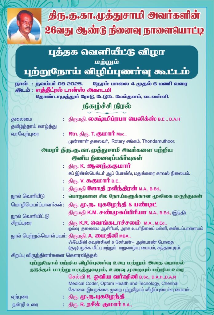 It is a great honour to be invited as a distinguished guest to grace the book publication ceremony and share in this momentous literary event happened in Vadavalli